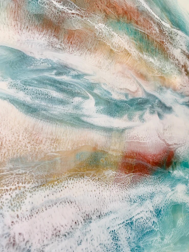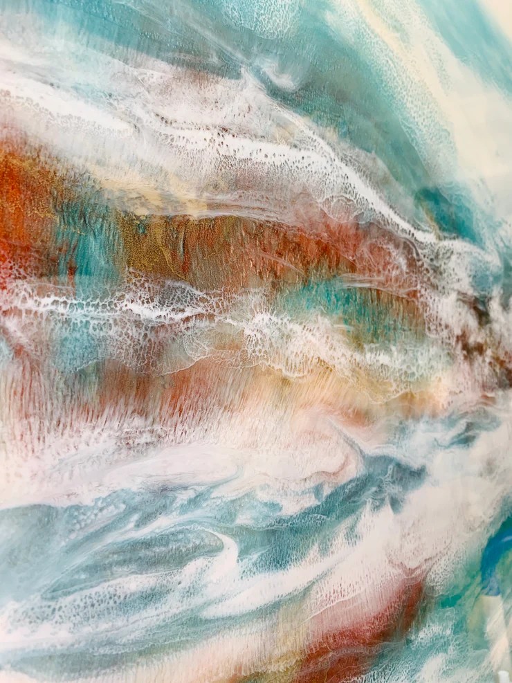 Resin abstract painting on cradled Birchwood panel. This contemporary painting has 4 layers of resin creating amazing depth. 24″36″ SOLD!