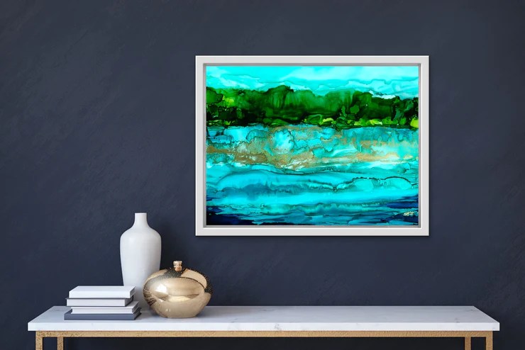 Alcohol painting on yupo paper mounted on Birchwood panel with resin top coat. 16″x20″ SOLD!